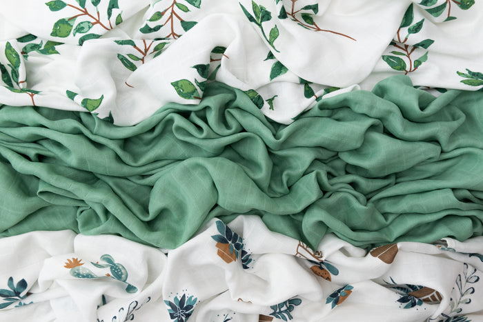 Set of 3 Organic Bamboo Swaddles- Green Planet