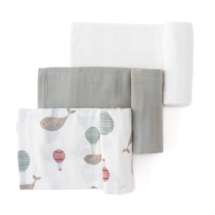 Set of 3 Organic Bamboo Swaddles- The Flying Whale