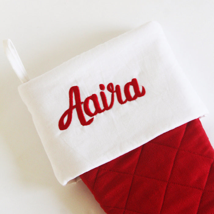 Personalised Stocking - White Top & Red Bottom is backordered and will ship as soon as it is back in stock.