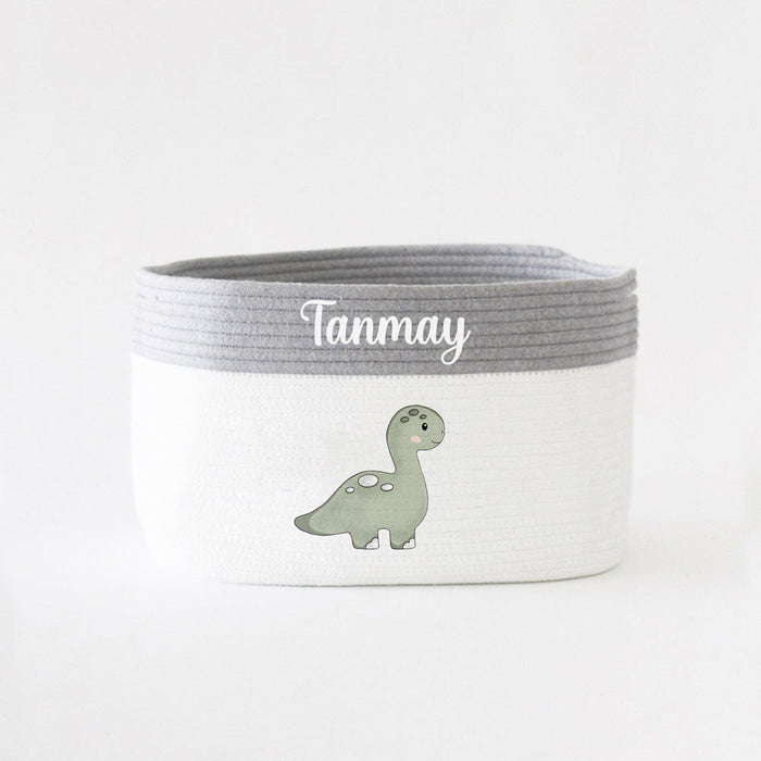 Personalized Storage Basket - Medium - Dino Theme - Grey