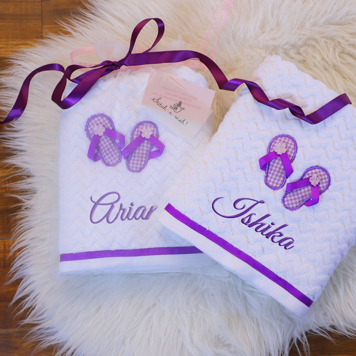 The cute Flip-flop fun Bath towel will help your kids take regular showers. With a uniform zig-zag pattern on it, staying clean is as easy as it gets.
