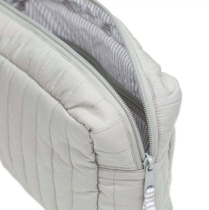 From toiletries to little toys, carry all the things your little one needs in this stylish and practical quilted Organiser Pouch. Featuring a durable zipper and a spacious interior compartment, they are great for organising and fit perfectly inside our Changing Bag, making them a must-have while on holiday.
