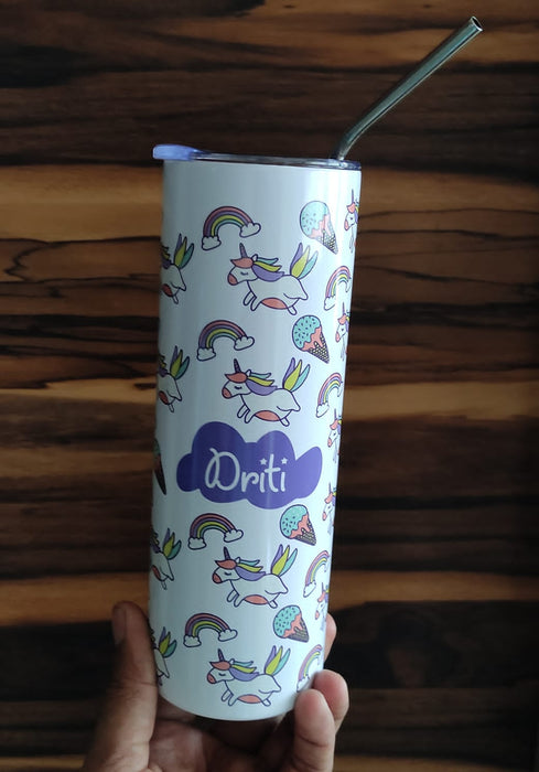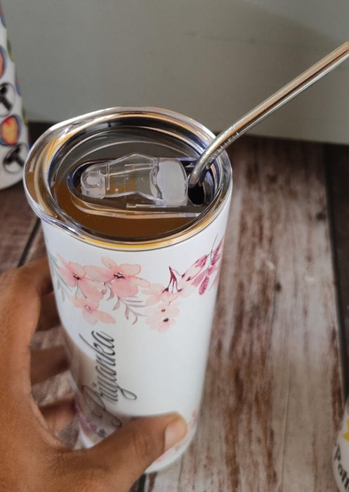 Stay hydrated with this tumbler that comes with a steel straw. Portable and stylish, it's perfect for office or travel purposes or as a birthday gift.