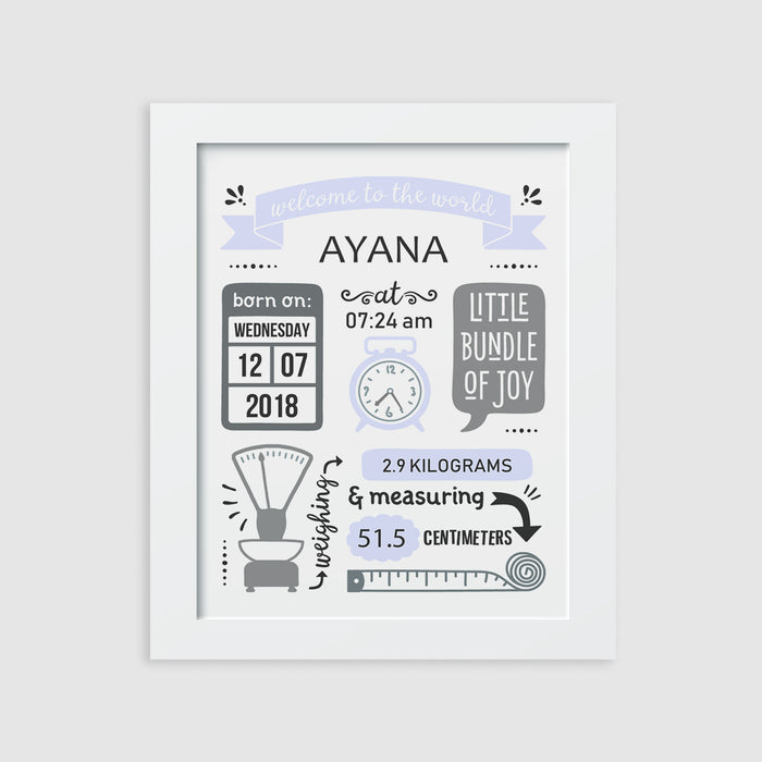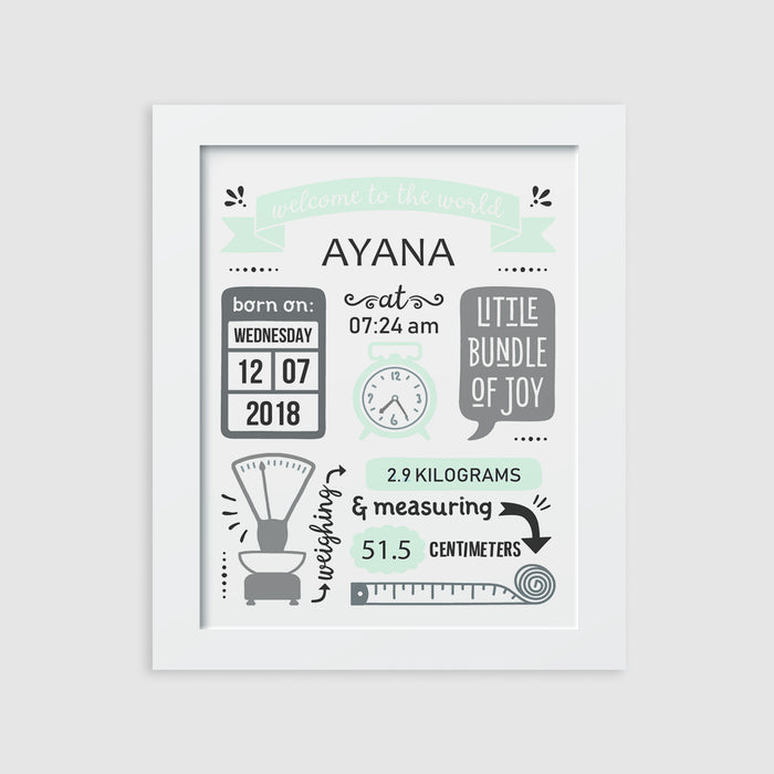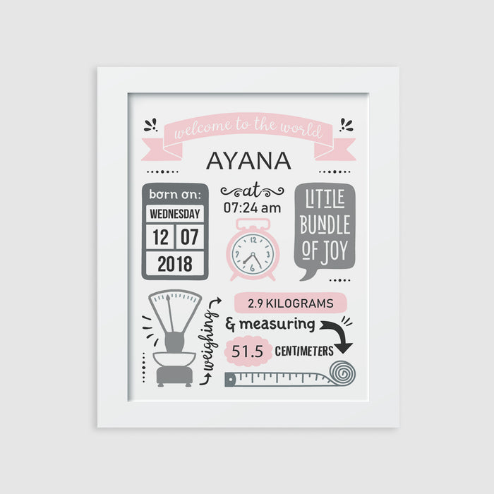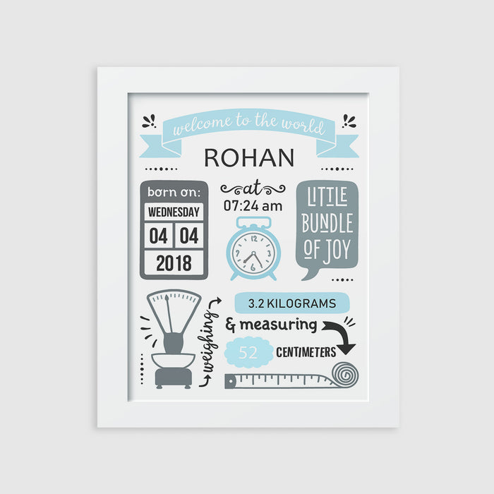 - To personalise the frame, please provide all these details in the space provided: Full name, Date of Birth, Time (am/pm), Height in cms and Weight in kgs or pounds