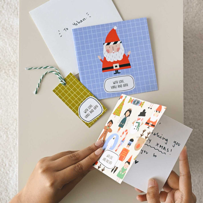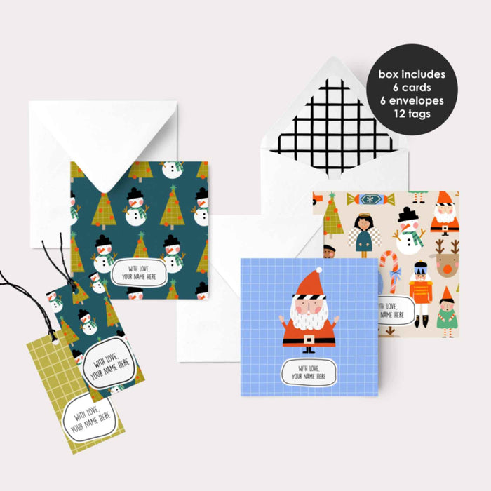 These adorable greeting cards and tags are the perfect solution for your Christmas gifting needs. Write season's greetings or just send a gift with your name tag attached, this set has everything you need! The set includes: