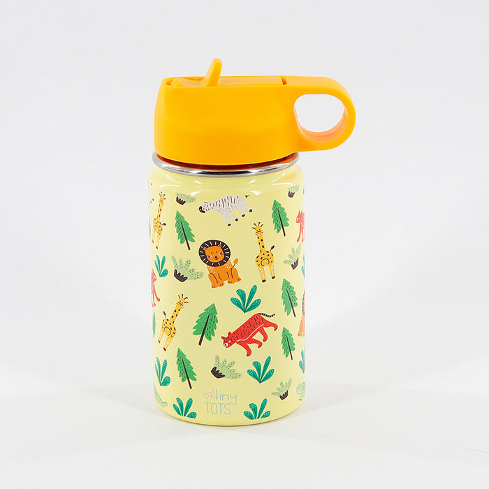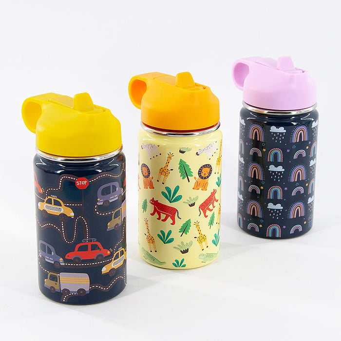 Insulated Steel Water Bottle with Straw, 350 ml - Safari Animal Theme