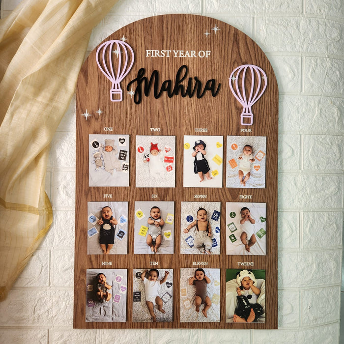 Celebrate your baby’s milestones with our My First Year Photo Organizer – Hot Air Balloon! Featuring a charming wooden printed background with classic truck detailing, this organizer is perfect for showcasing your little one’s first-year memories.