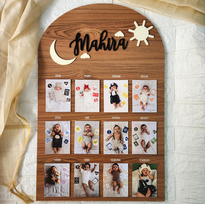 Celebrate your baby’s milestones with our My First Year Photo Organizer – Sun Moon Stars! Featuring a charming wooden printed background with classic truck detailing, this organizer is perfect for showcasing your little one’s first-year memories.