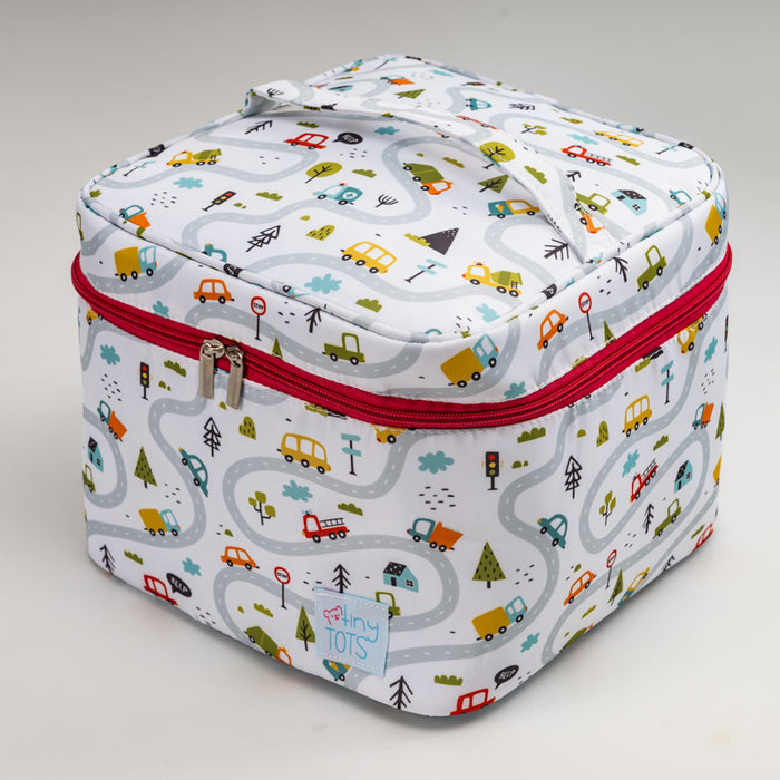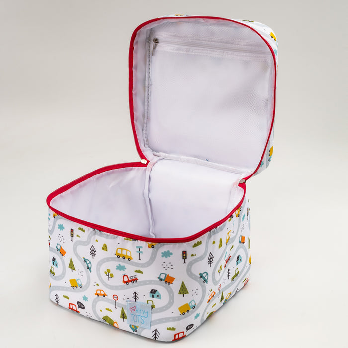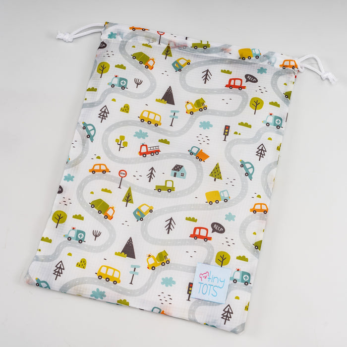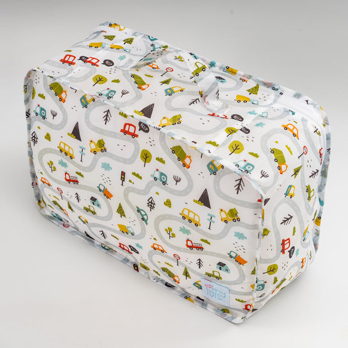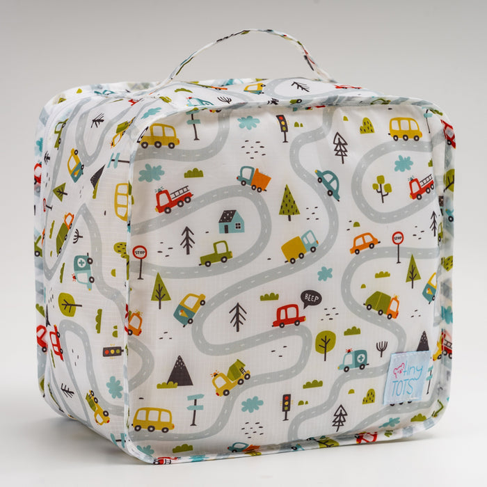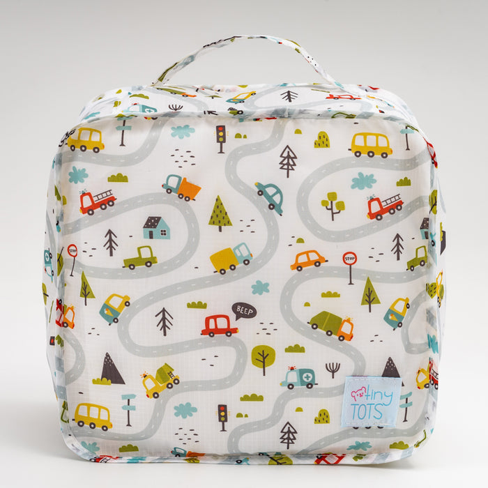 Make packing a breeze with these adorable car-themed packing cubes, designed for babies, toddlers, and kids. Crafted from lightweight and durable materials, they maximize luggage space while keeping essentials neatly sorted. The vibrant car print adds a playful touch, making packing and unpacking fun for little travelers.